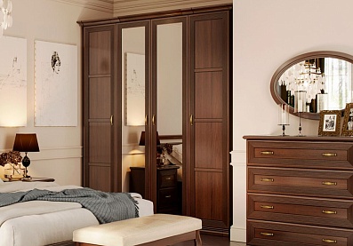 Шкаф Кантри с полками КА-011.00 (1 комплект), 2 выдвижными ящиками и штангой для одежды с зеркалом Валенсия